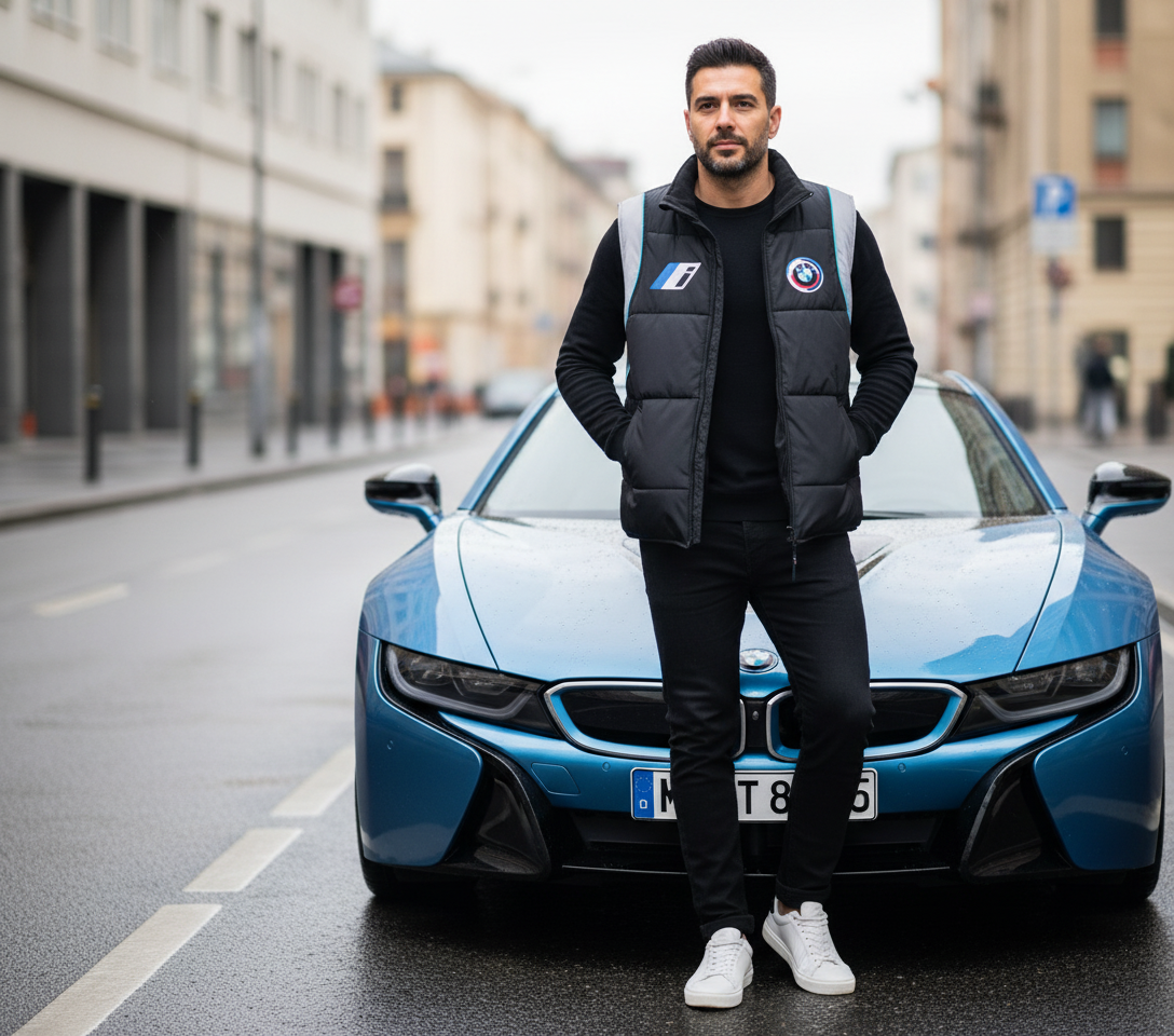 BMW i E-Drive Black-Grey Sport Vest – Embroidered Electric Series Logos | Lightweight Performance Outerwear